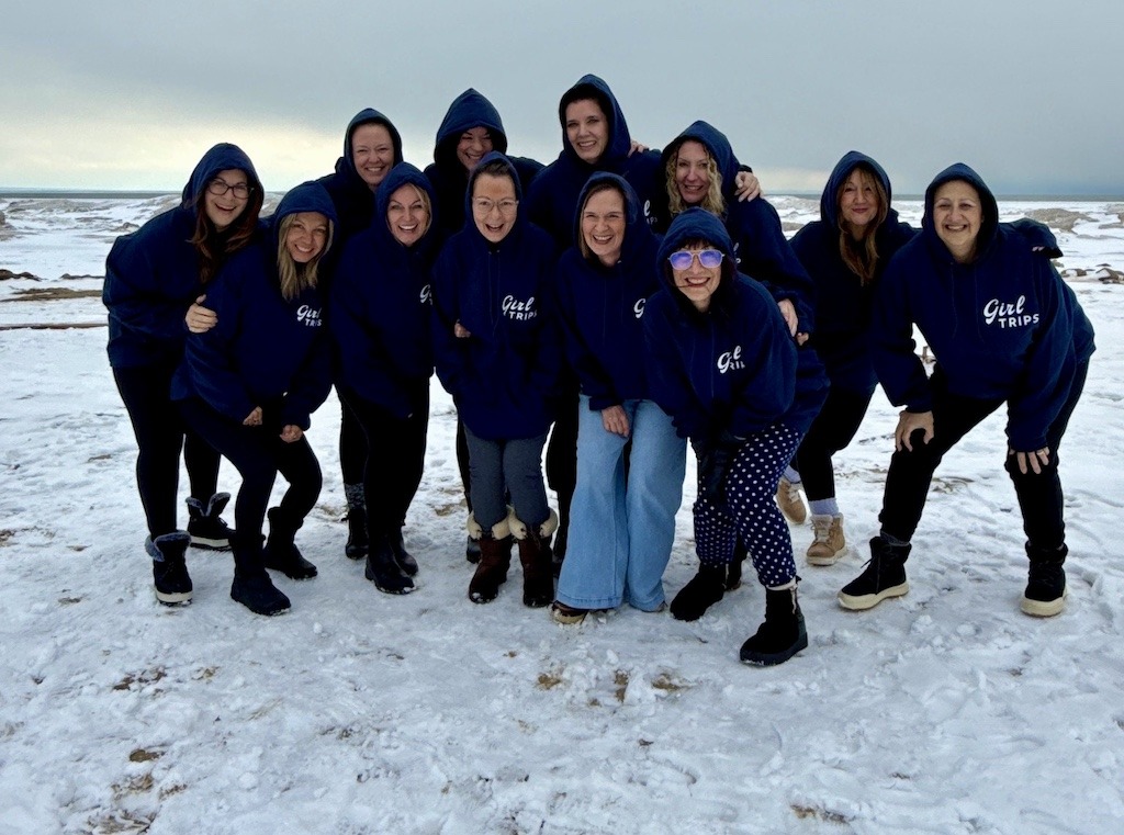 The most surprising part of the weekend? We actually loved the winter beach. Bundled in our matching Girls Gone Mild hoodies (shoutout to The Sunflower Craft Co. in Burlington for the quick turnaround), we braved the cold for group photos on the snowy sand, watched the frozen waves, and marvelled at how stunning Lake Erie looks in January.